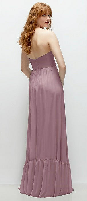 Ruffle Strap Chiffon Bustier Maxi Dress with Ruffle Hem A-Line Skirt in dusty rose