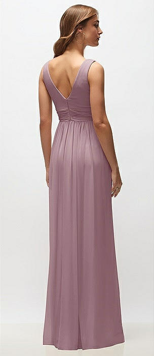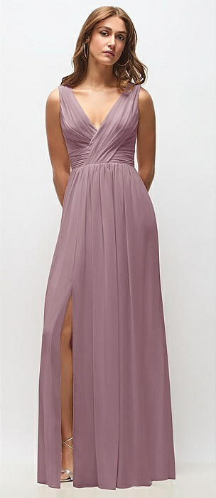 Sleeveless Draped Chiffon Maxi Dress with Front Slit in dusty rose