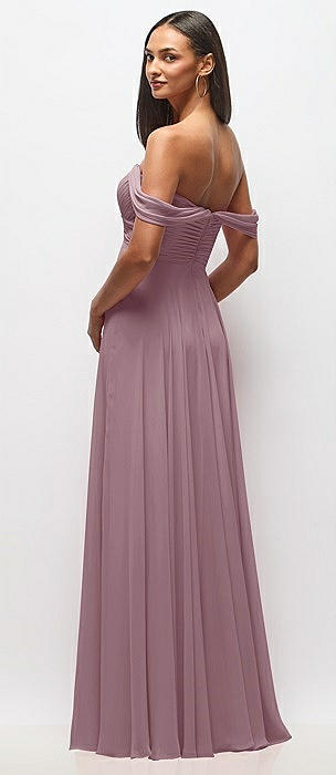 Off-the-Shoulder Basque Corset Chiffon Maxi Dress in dusty rose
