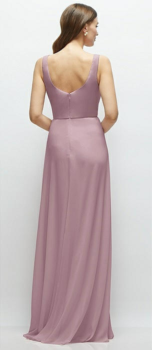 Square Neck Chiffon Maxi Dress with Circle Skirt in dusty rose