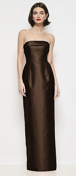 Strapless Pleated U-Wire Satin Column Maxi Dress in espresso