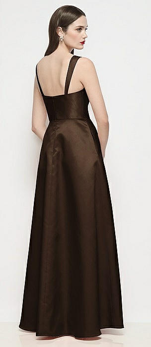 Strapless Pleated U-Wire Satin Maxi Dress with Semi Circle Skirt in espresso
