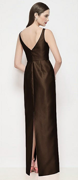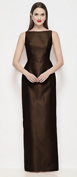 Bateau Neck Satin Maxi Dress with Pleated Column Skirt in espresso