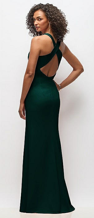 Off-the-Shoulder Criss Cross Back Trumpet Gown in evergreen