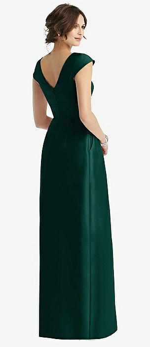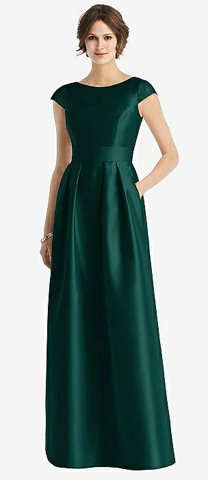 Cap Sleeve Pleated Cocktail Dress with Pockets in evergreen