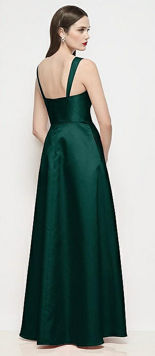 Bow One-Shoulder Full A-Line Satin Maxi Dress in evergreen