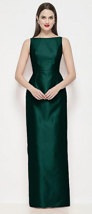 Bateau Neck Satin Maxi Dress with Pleated Column Skirt in evergreen