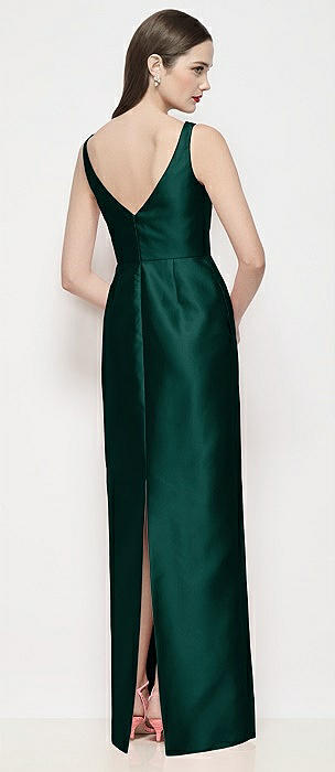 Sleeveless V-neck Satin Maxi Dress with Pleated Skirt in evergreen