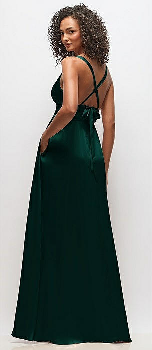 Cuff Neck Satin Bias Maxi Dress with Self-Tie Spaghetti Straps in evergreen