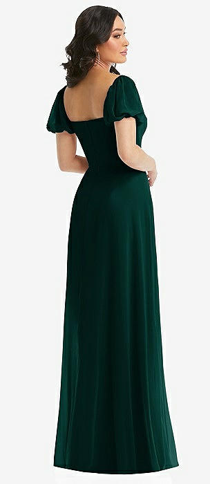 Bow Shoulder Square Neck Chiffon Maxi Dress in evergreen