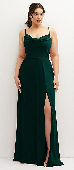 Soft Cowl-Neck A-Line Maxi Dress with Adjustable Straps in evergreen
