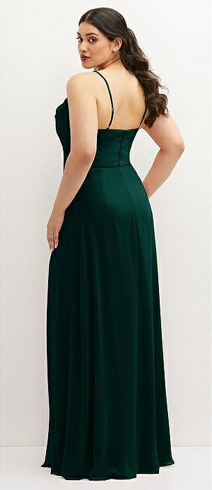 Cowl Neck Chiffon Maxi Dress with Hand-Worked Petal Straps in evergreen