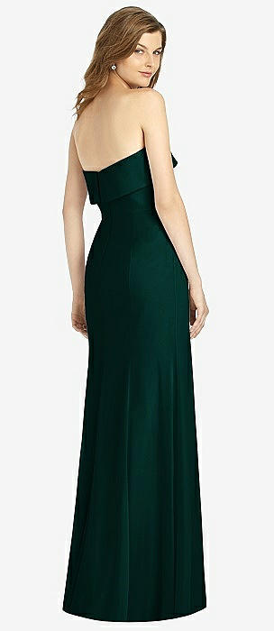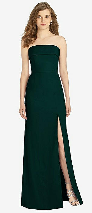 Strapless Satin Gown with Draped Front Slit and Pockets in evergreen