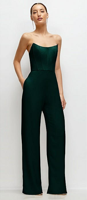Strapless Cat-Eye Corset Crepe Wedding Jumpsuit in evergreen