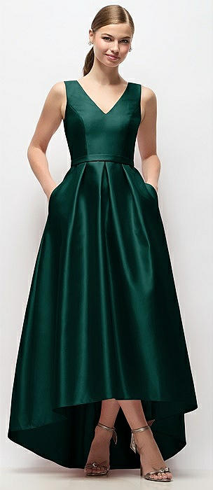 Sleeveless A-Line Satin Dress with Pockets in evergreen