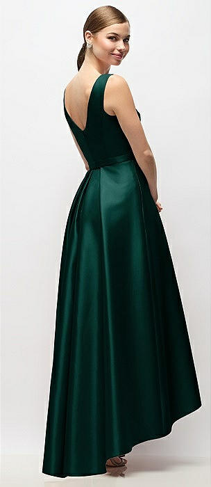 Bateau Neck Satin High Low Cocktail Dress in evergreen