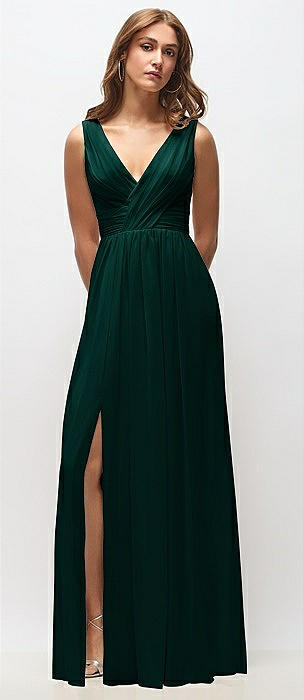 Sleeveless Draped Chiffon Maxi Dress with Front Slit in evergreen