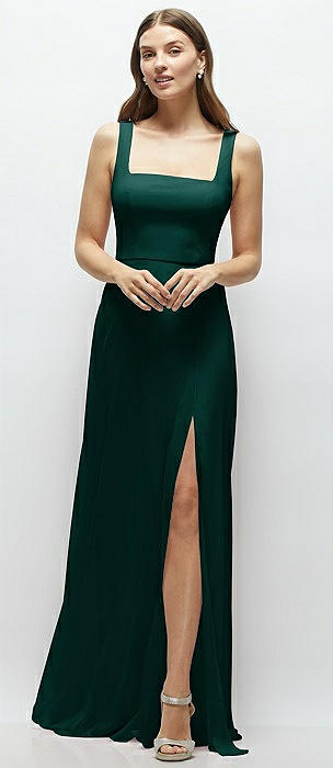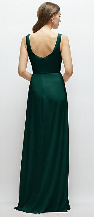 Square Neck Chiffon Maxi Dress with Circle Skirt in evergreen