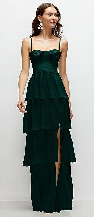 Bustier-Style Chiffon Tiered Ruffle Maxi Dress with Adjustable Straps in evergreen