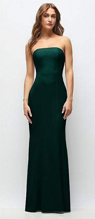 Strapless Draped Bodice Stretch Satin Column Maxi Dress in evergreen