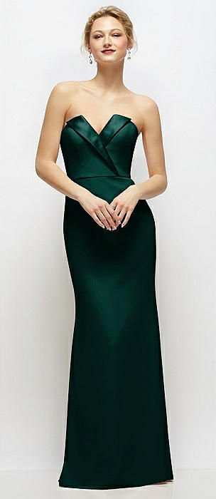 Strapless Satin Column Dress with Removeable Watteau Train in evergreen