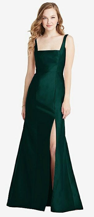 Cap Sleeve Open-Back Trumpet Gown with Front Slit in evergreen