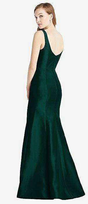Sleeveless Satin Trumpet Gown with Bow at Open-Back in evergreen
