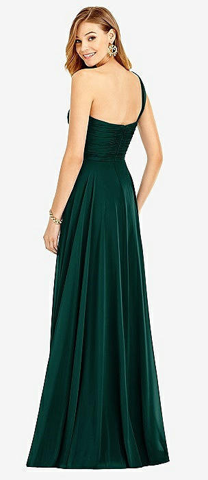 Shirred One-Shoulder Satin Trumpet Dress - Maddie in evergreen