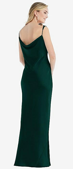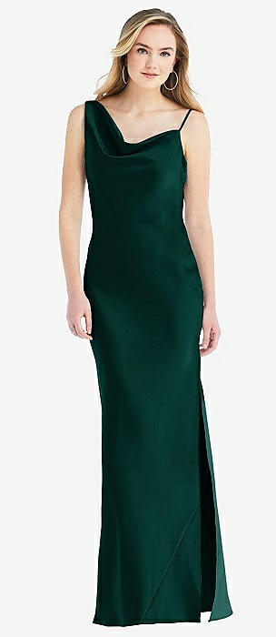 Asymmetrical One-Shoulder Cowl Maxi Slip Dress in evergreen