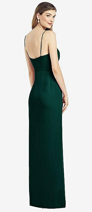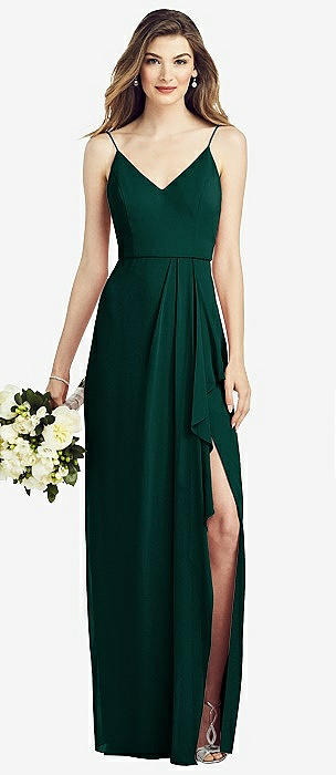 Spaghetti Strap Draped Skirt Gown with Front Slit in evergreen