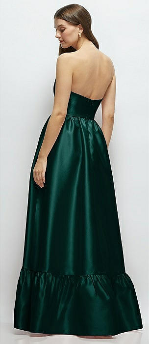 Strapless Cat-Eye Boned Bodice Maxi Dress with Ruffle Hem in evergreen