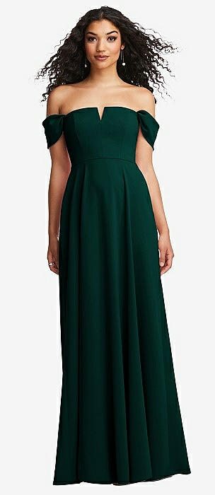 Off-the-Shoulder Pleated Cap Sleeve A-line Maxi Dress in evergreen