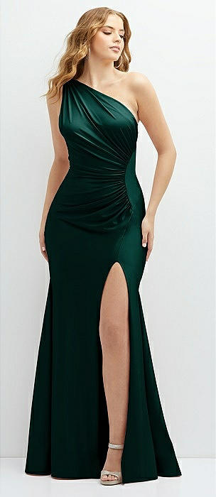 Asymmetrical Open-Back One-Shoulder Stretch Satin Mermaid Dress in evergreen