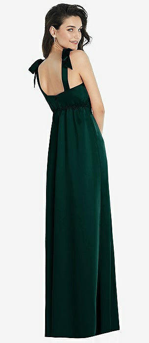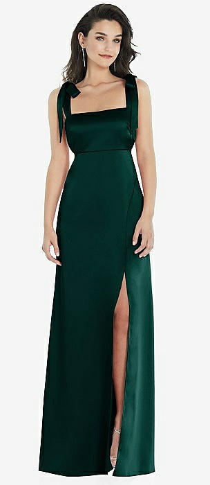 Flat Tie-Shoulder Empire Waist Maxi Dress with Front Slit in evergreen