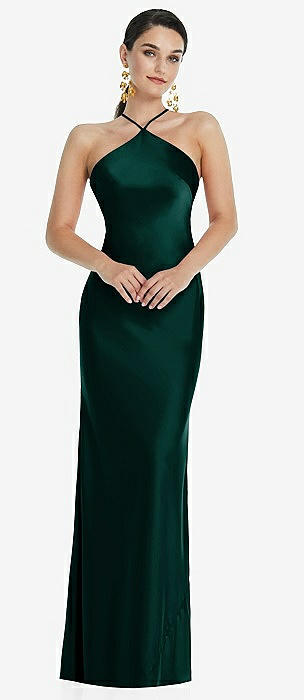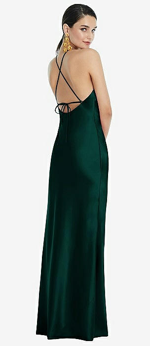 Diamond Halter Bias Maxi Slip Dress with Convertible Straps in evergreen
