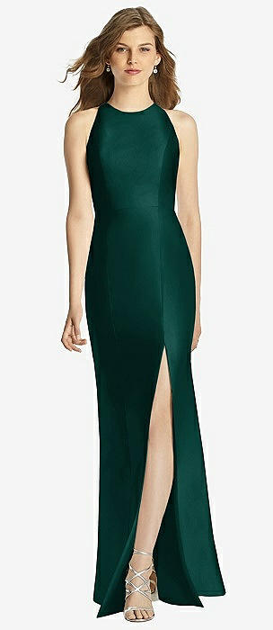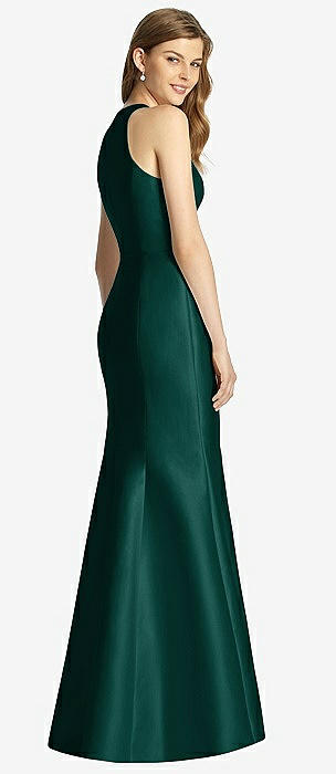 Open Neckline Cutout Satin Twill A-Line Gown with Pockets in evergreen