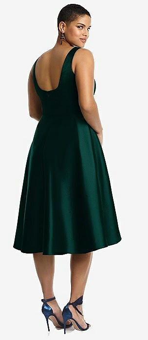 Bateau Neck Satin High Low Cocktail Dress in evergreen