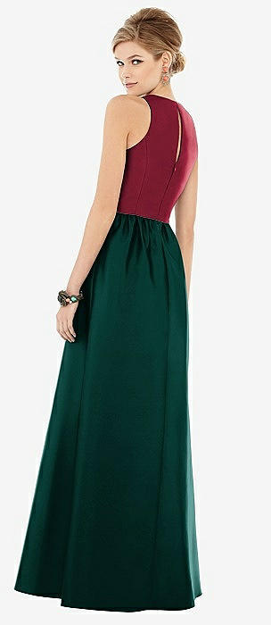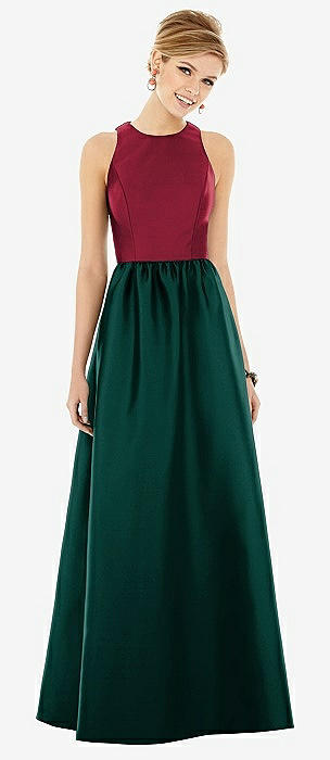 Sleeveless Open-Back Satin A-Line Dress in evergreen