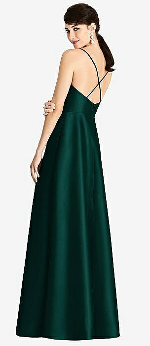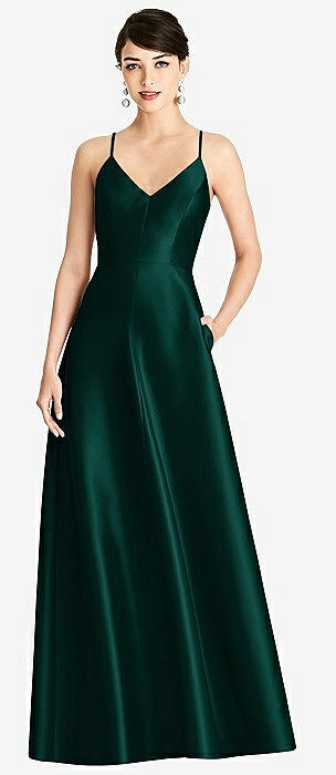 Sleeveless A-Line Satin Dress with Pockets in evergreen