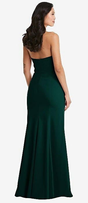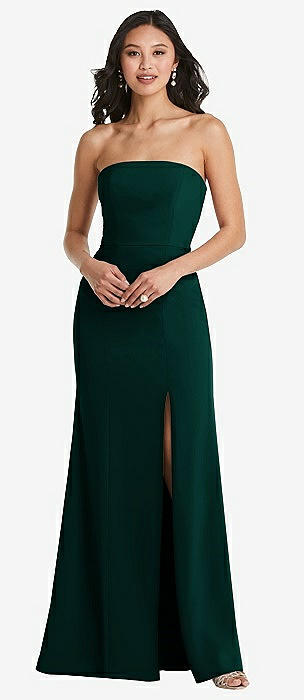 Strapless Notch Crepe Jumpsuit with Pockets in evergreen