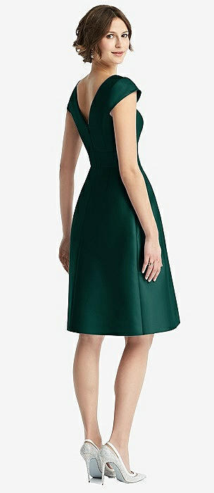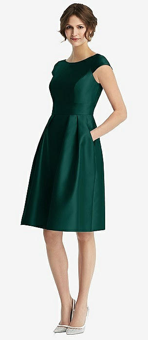 Cap Sleeve Pleated Cocktail Dress with Pockets in evergreen