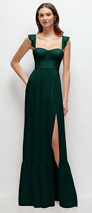 Ruffle Strap Chiffon Bustier Maxi Dress with Ruffle Hem A-Line Skirt in evergreen
