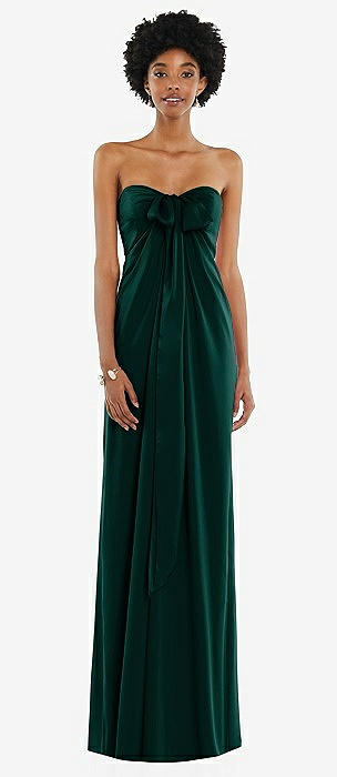 Draped Satin Grecian Column Gown with Convertible Straps in evergreen