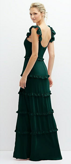 Tiered Chiffon Maxi A-line Dress with Convertible Ruffle Straps in evergreen