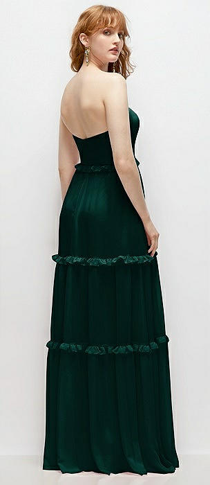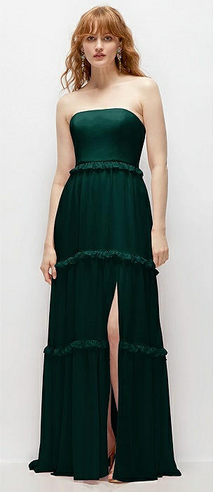 Strapless Chiffon Maxi Dress with Tiered Micro Ruffle Full Skirt in evergreen