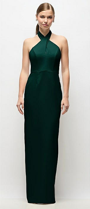 Criss-Cross Halter Open-Back Crepe Column Maxi Dress in evergreen