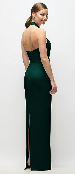 Draped Scarf Halter Open-Back Stretch Satin Bias Maxi Dress with Adjustable Straps in evergreen