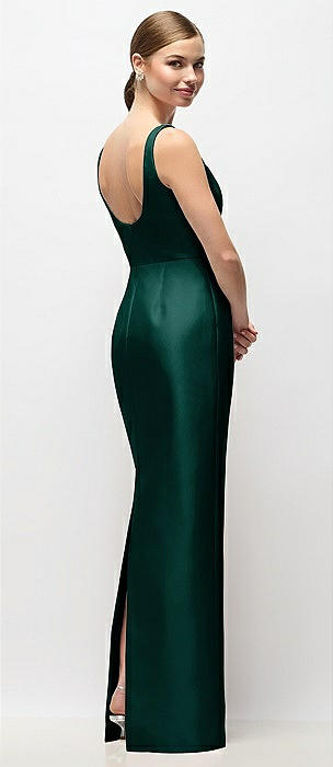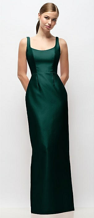 Scoop Neck Satin Column Maxi Dress in evergreen