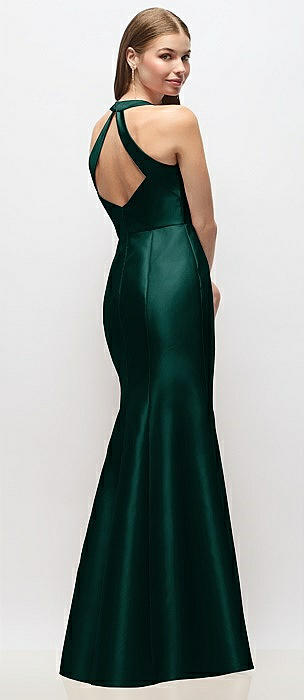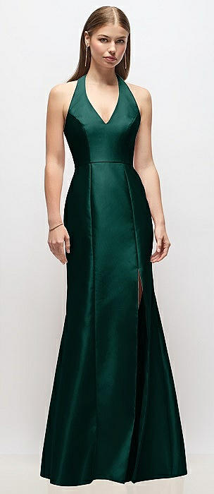 V-Neck Halter Satin Trumpet Gown in evergreen