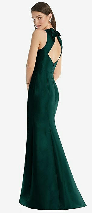 Sleeveless Satin Trumpet Gown with Bow at Open-Back in evergreen